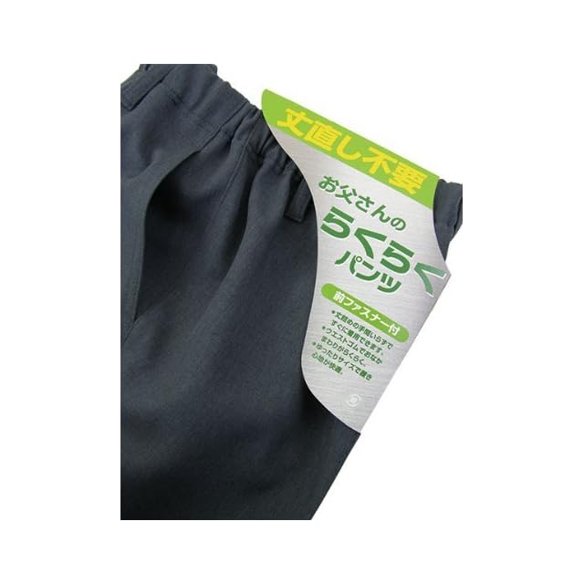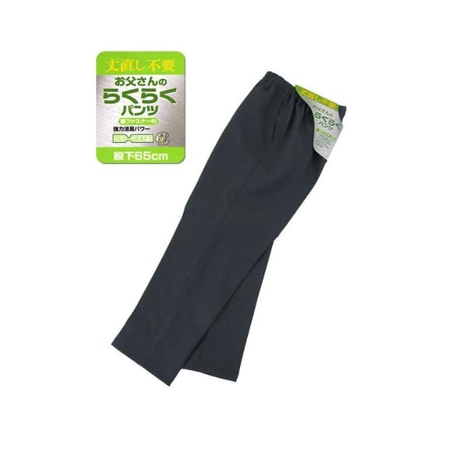 お父さんのらくらくパンツ 丈直し不要(股下65cm)やや厚手生地。素材/ポリエステル100%(東レ デオ・グラフト)強力消臭パワーでいつもクリーン!履き心地が快適です。前ファスナー付、ウェスト総ゴム、ベルト通し付。日本製。