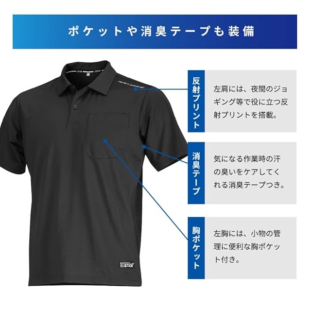 ・特殊鉱石を繊維に練り込み、遮熱性が向上。生地裏面を凹凸状にさせて生地と肌の接地面積を軽減させ、汗の拡散を促進させます。