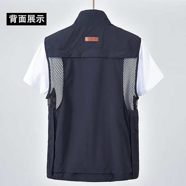 [Kuhvvse] ベスト メンズ 夏 背中取り外し可能 メッシュベスト ゴルフ アウトドア 多機能 大きいサイズ 通気 速乾 釣り 作業着 春 秋(4XL ネイビー)