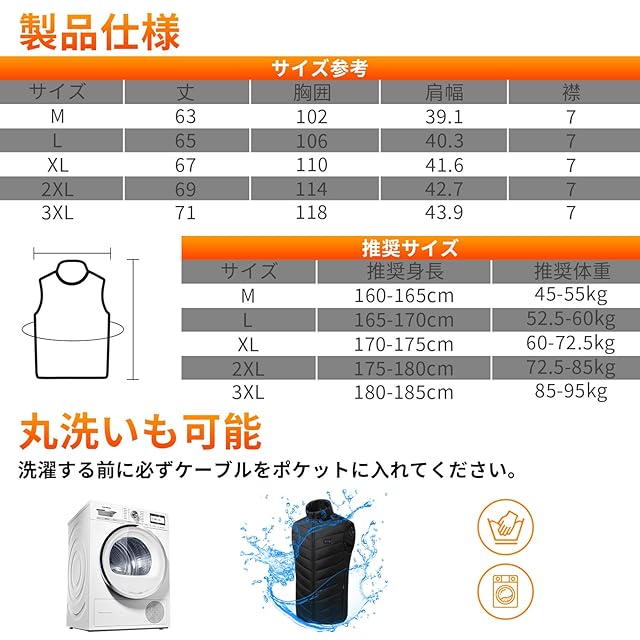 2024年モデルは、前面と背面に21個の炭素繊維ヒーターを搭載しています。炭素繊維で作られており、安定した温度を維持します。スイッチを入れると高温で起動するように設定されていますが、胸のボタンを操作して温度を制御します。電源を入れた後、10秒ほどゆっくりと温めます。約1分待つと暖かくなります。