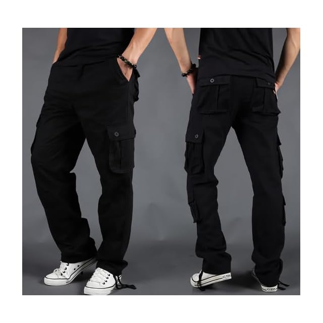[DauStage] ミリタリー パンツ 迷彩パンツ タクティカル ワーク カジュアル サバゲー パンツ (ブラック 32(83cm))