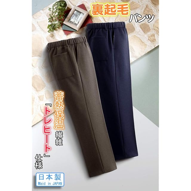 [リトルアイランド] 裏起毛パンツ ズボン 股下68cm L ブラウン メンズ ファスナー 総ゴム ニット 日本製 国産 蓄熱保温トレヒート L 茶 68