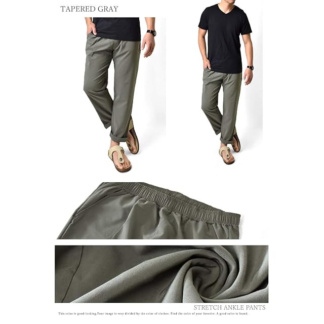 [アルージェ] ストレッチパンツ メンズ シェフパンツ アンクルパンツ スマホポケット 9分丈 ワイド イージーパンツ ドライ 吸汗速乾 / A1Y / 3L テーパード9分丈グレー