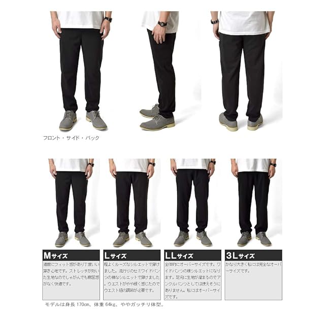 Lサイズ ( テーパード[ウエスト:78-103 ヒップ:104 股上:29 総丈:96 ワタリ:31 股下:69 裾幅:16.5] リラックス[ウエスト:80-110 ヒップ:114 股上:31 総丈:95 ワタリ:34 股下:69 裾幅:18] )