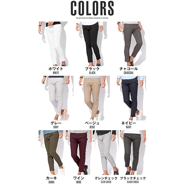 [ラグスタイル] LUX STYLE スキニー アンクル メンズ チノパン ストレッチ 細身 ブラックチェックL pm-7324