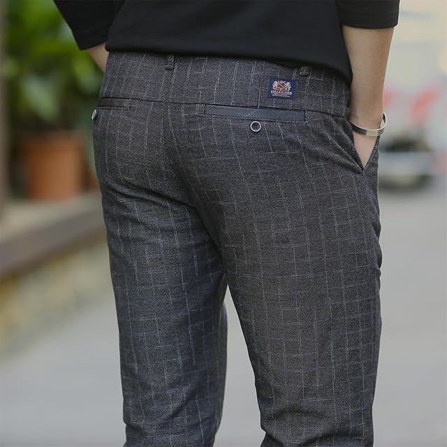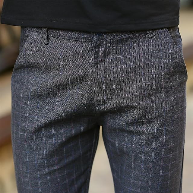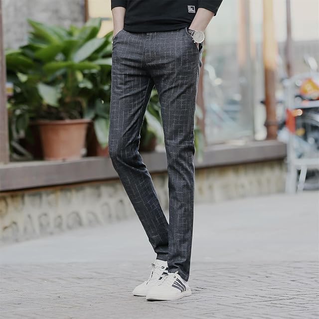 LUISUI(ルイスイ)メンズロングパンツ チノパン チェック柄 美脚ロングパンツ スキニーパンツ ビジネスズボン スタイリッシュ カジュアル 通気性 ギンガム 通勤 オールシーズン 3色 (グレー, 31)