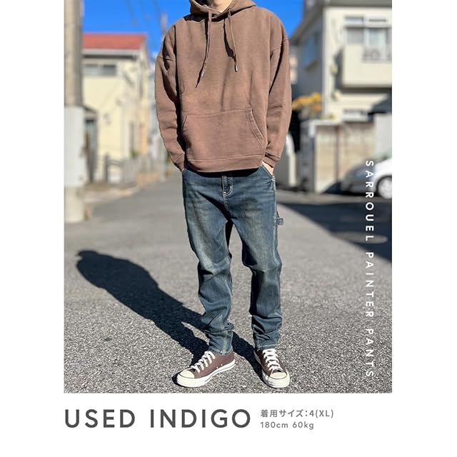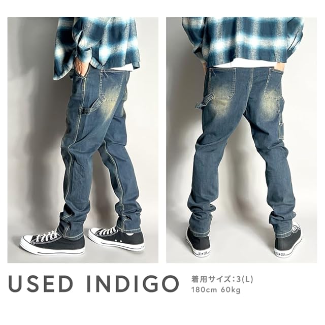 [BEATJIVE] 9213-2030(4, USED INDIGO) サルエルパンツ ペインターパンツ デニム ヴィンテージ加工 ストレッチ スキニー ワークパンツ 春 夏 秋 冬 (XL, USED INDIGO)