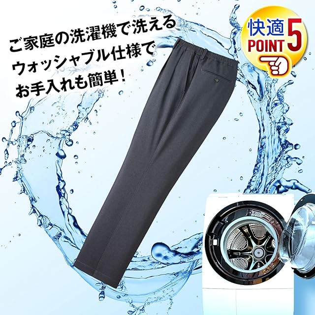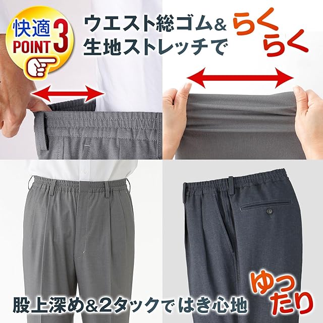 [ポールミラー] 日本企画 スラックス ウエストゴム 裾上げ済み メンズ マジックテープ ゴム 通年 春 夏 秋 (3L(股下70), チャコール)
