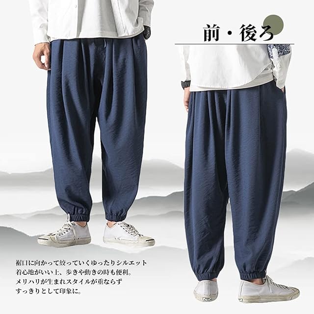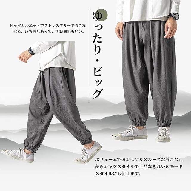 [YIMANIE] サルエルパンツ ワイドパンツ メンズ アラジンパンツ 春 夏 秋 冬 ゆったり ビッグシルエット 薄手 厚手 ゆるゆる 無地 ロング丈 オーバーサイズ ゴム紐付き 大きいサイズ ルームウェア