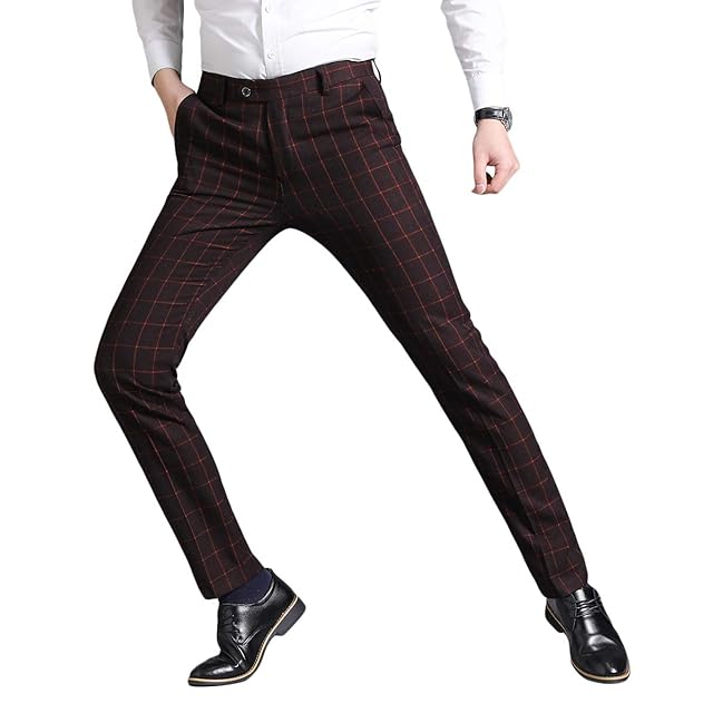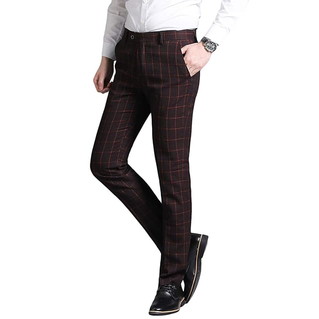 [YUNCLOS] スラックス メンズ 大きいサイズ スラックス メンズ すそ上げ済み チェック柄 スリム
