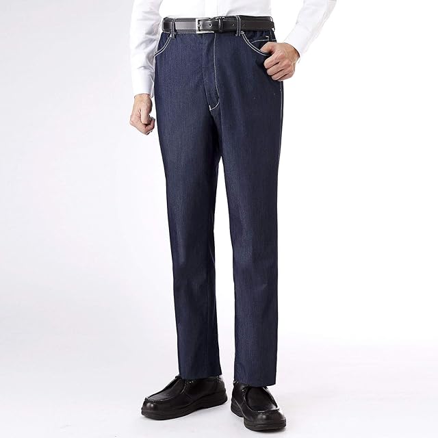 [ハンティントンクラブ] スラックス デニム クールマックス 裾上げ済 ノータック メンズ 2色組 (Lサイズ(股下75))