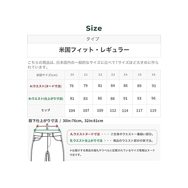 【サイズ&フィット】 股上は普通、腰から腿がすっきりした、クラシック・フィット。 ベルト通しは幅約4cm。 フロントタック入り。こちらの商品は「米国フィット」です。米国フィットは、L.L.Bean米国本社とまったく同じサイズ規格の商品です。日本で販売されている国内メーカーの一般的なサイズに比べ、1サイズほど大きめに作られています。
