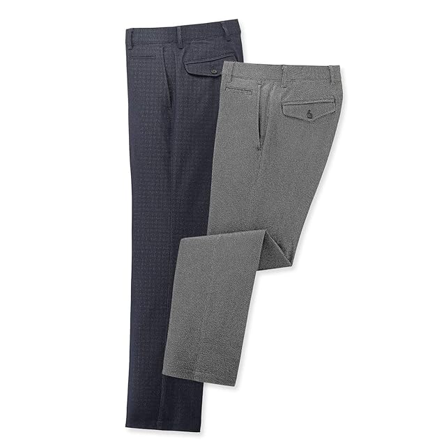 [ハンティントンクラブ] スラックス 裾上げ済 バーズアイ のびのび撥水 ノータック 2色組 メンズ (M / L65)