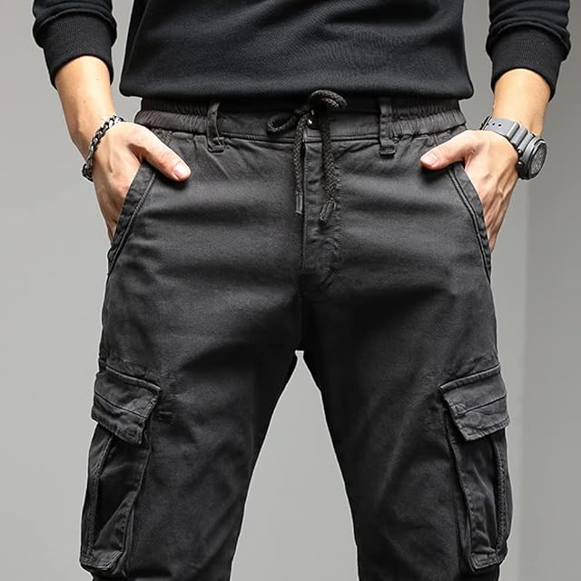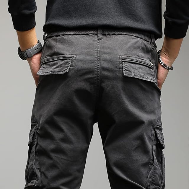 [netero] カーゴパンツ メンズ ミリタリー 無地 綿 タクティカルパンツ スキニー 調整紐 ファッション 夏 春 秋 冬 グレー BL8063-GRAY-32