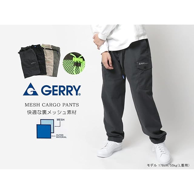 [Gerry] [ジェリー] カーゴパンツ メンズ 裏メッシュ ワンポイント ロゴ 刺繍 ゆったり ズボン (M, ブラック)