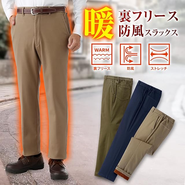 [ハンティントンクラブ] スラックス 裏フリース 裾上げ済み 防風 メンズ 2色組 (L / L75)