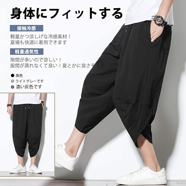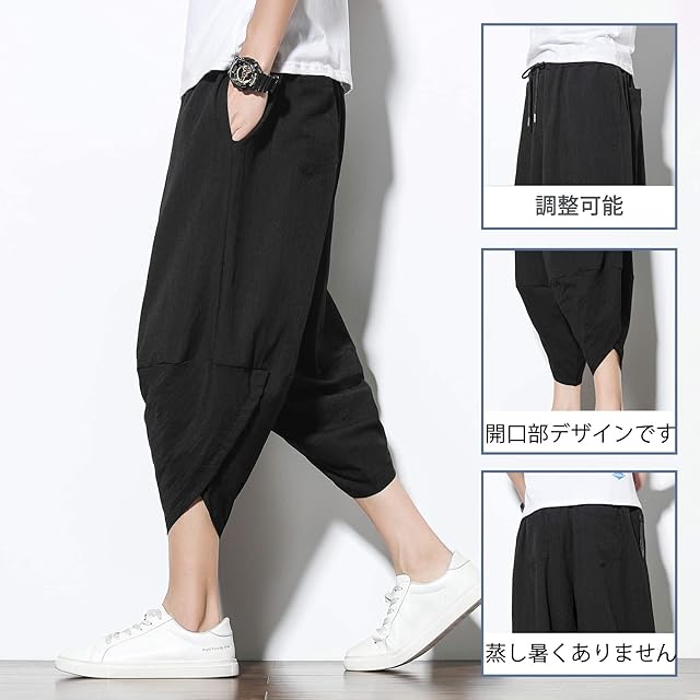 [uncn] ワイドパンツ メンズ サルエルパンツ メンズ 夏 大きいサイズ ゆったり おしゃれ 春 七分丈 麻 接触冷感 涼しい 無地 ガウチョパンツ ズボン メンズ 夏服 Black XL