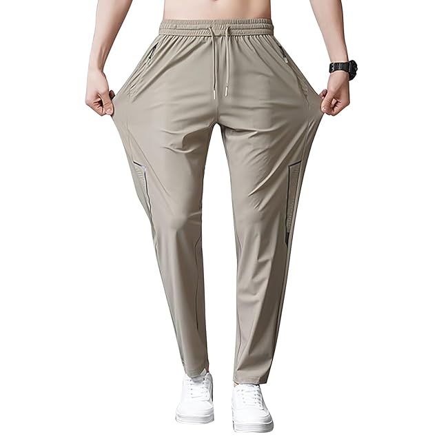 [FLYGAGA] アイスシルクパンツ冷感ズボンメンズロングパンツスウェットパンツスラックス ストレッチパンツ 涼しい 薄手 伸縮 春 夏 秋