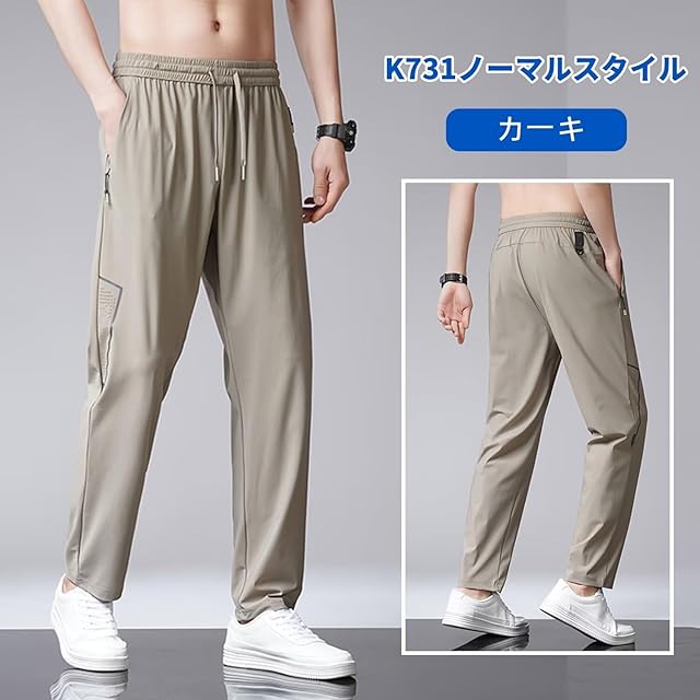 【ズボンメンズ】涼しい感触のアイスシルク生地を使用しています。接触冷感・吸汗速乾・撥水性・ストレッチ性 。7サイズ:L、XL、2XL、3XL、4XL、5XL、6XL からお選びいただけます。