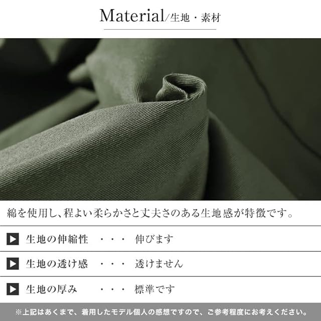 Material/素材感 綿の使用により柔らかな肌あたりを実現。 伸縮性を持たせ、ストレス感のない着用が 余裕のあるオトコを演出。 ウエスト部分はゴムになっており、調整が可能なのも嬉しいポイント。