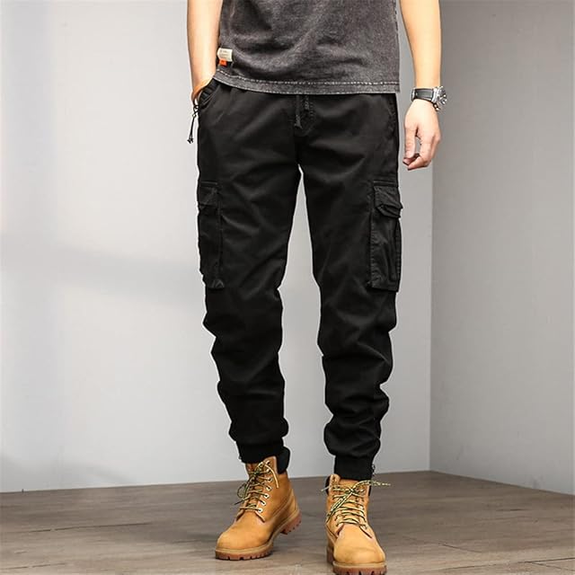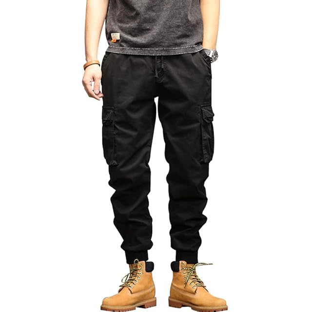 [Hisokamoro] カーゴパンツ メンズ 作業 ズボン パンツ ワークマン ロングパンツ タクティカルパンツ ワークパンツ 調整紐 綿 春夏秋冬 ブラック BL1102-681BLACK-38