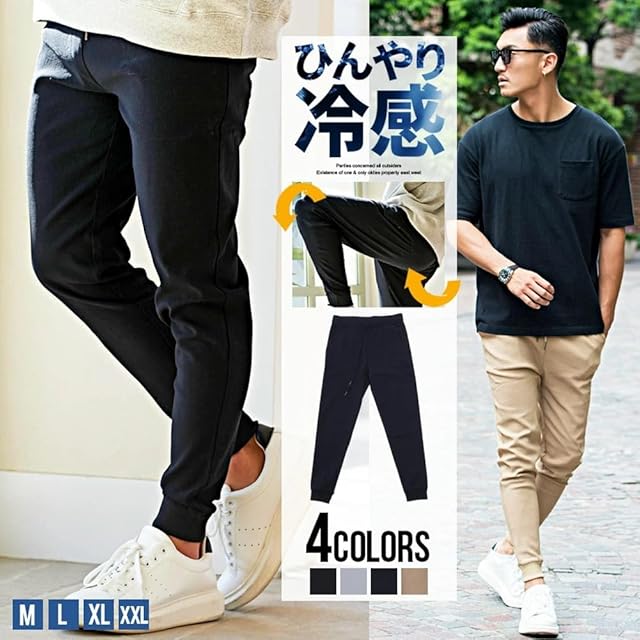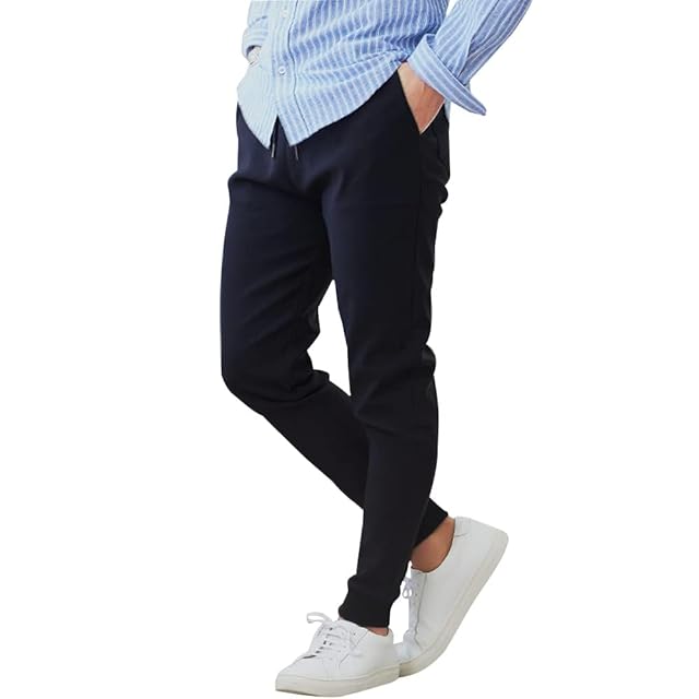 [キャバリア] ジョガーパンツ メンズ ストレッチ リブ 接触冷感 スリム スキニー フィット テーパード おしゃれ スポーツ 伸縮性 無地 シンプル 紐 ポケット ルームウェア ユニセックス ファッション CARE21-07【-】 46(L) NAVY(ネイビー)