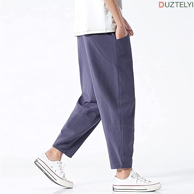 DUZTELYI ズボン メンズ サルエルパンツ カジュアル 夏服 通気 無地 調整紐 ポケット付き ワイドパンツ 大きいサイズ 通勤 通学 四季対応 DU630 (L, グレー)