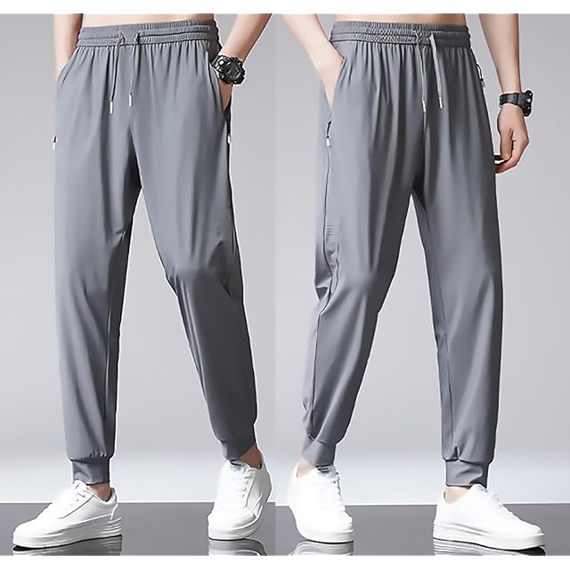 [FLYGAGA] アイスシルクパンツ ズボンメンズ 冷感パンツ ストレッチパンツ 涼しい スラックスカジュアルズボン接触冷感 薄手 夏用ズボン春 秋
