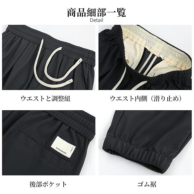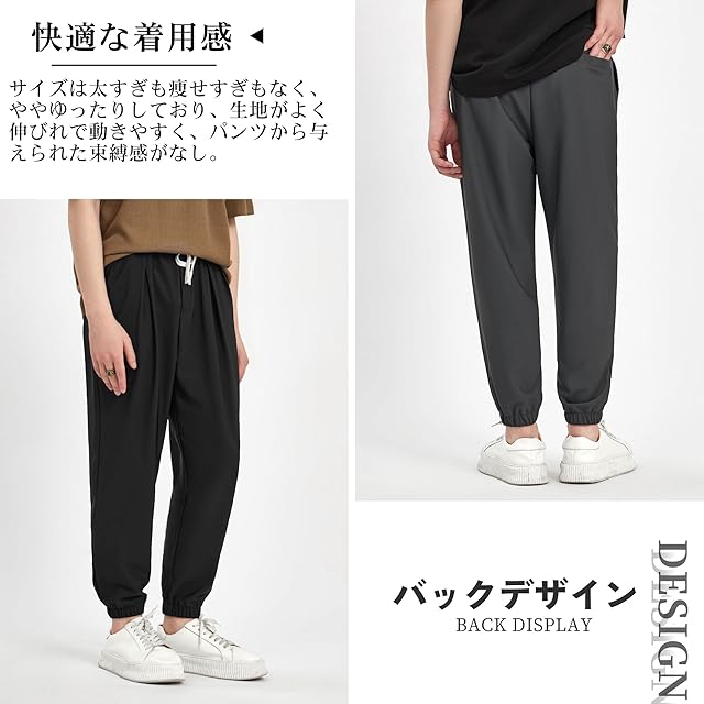 [Smilefoot] アイスシルクパンツ メンズ ズボン 接触冷感 ジョガーパンツ 夏用 9分丈 サルエルパンツ ゆったり ずぼん 涼しい 薄手 通気性 ゴム裾 調整紐 快適 ストレッチ カジュアル 夏 (XL, ブラック)