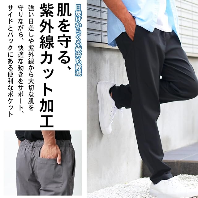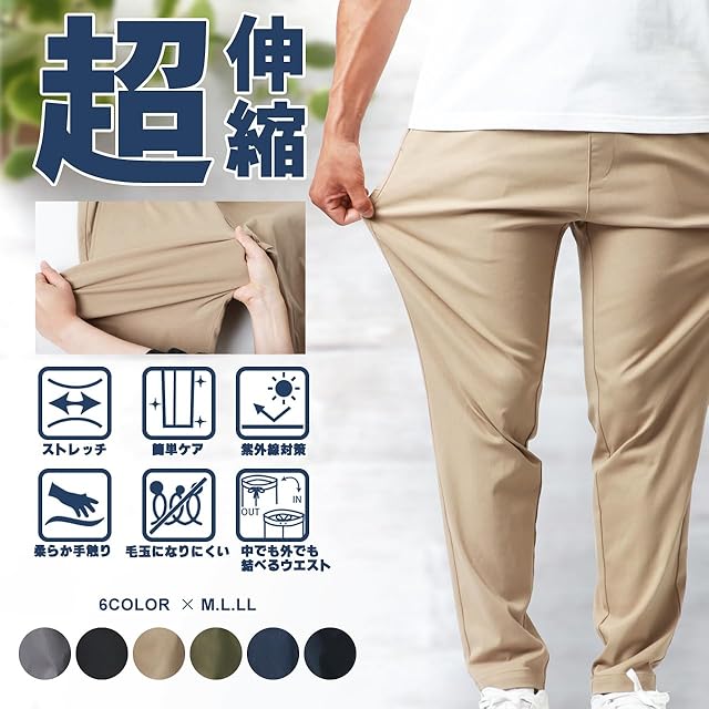 [エムアールユー] ストレッチパンツ メンズ ロングパンツ チノパン イージーパンツ カラーパンツ ズボン UVカット オリーブ M