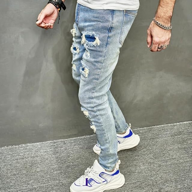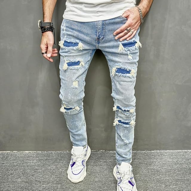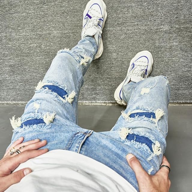 [プチドフランセ] デニム ダメージ メンズ バイク ジーンズ パンツ チノパン スキニー ポケット キレイメ リラックス L ストレート アウトドア スポーツ トレーニング 通勤 デート D-42 (36)