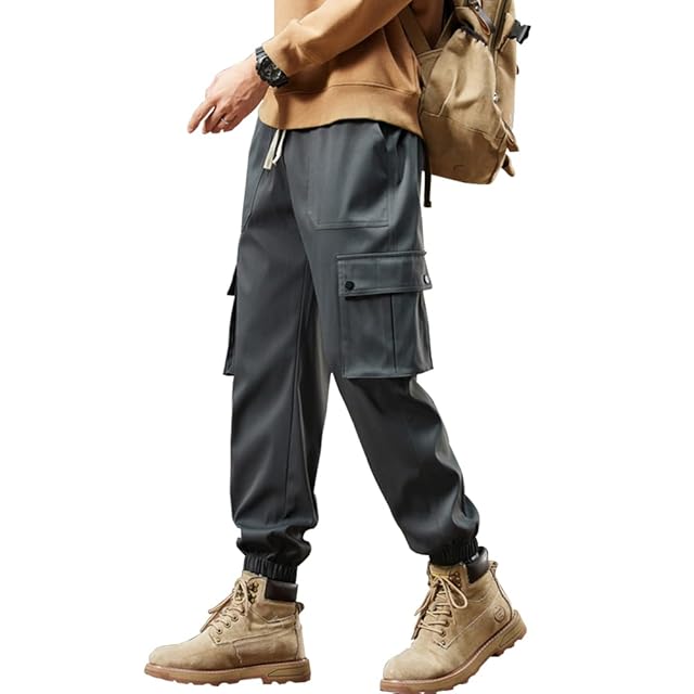 [Maioule] カーゴパンツ メンズ ズボン おしゃれ ワークパンツ ジョガーパンツ 作業 綿 ビッグポケット付き 調整紐 M-4XL 春 夏 秋 冬 (XPLYF02-ダークグレー02-2XL)