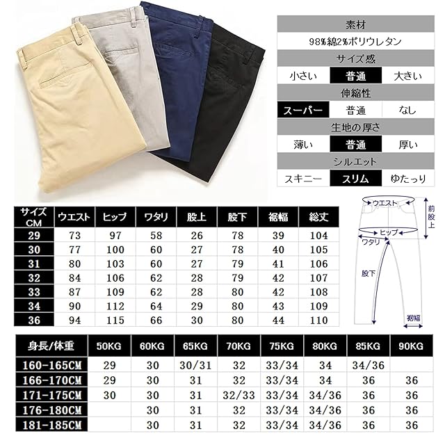 【綿の中でも最高品質とされるアメリカ綿を採用】素材構成: 綿98%、ポリウレタン2%、29-36サイズ、4色展開。★30日間返品保証、安心してお買い求めいただけます★。モデル:身長170㎝/体重55KG/ウエスト76㎝/普段S:着用サイズ30