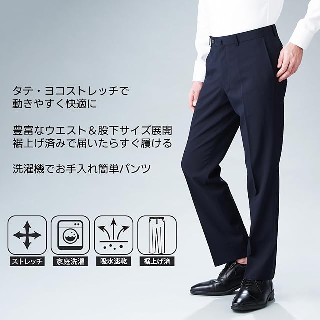 【裾上げ済みですぐに使える】オフィス・飲食店等のユニフォームとして、また急な冠婚葬祭用としても着用いただけます。 【サイズ】 選べる股下70/73/76/79cm。メーカーやブランドによりウエストサイズが表記より実寸が大きい場合があります。弊社は表記サイズで生産です。ご購入の際にはご確認下さい。