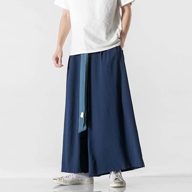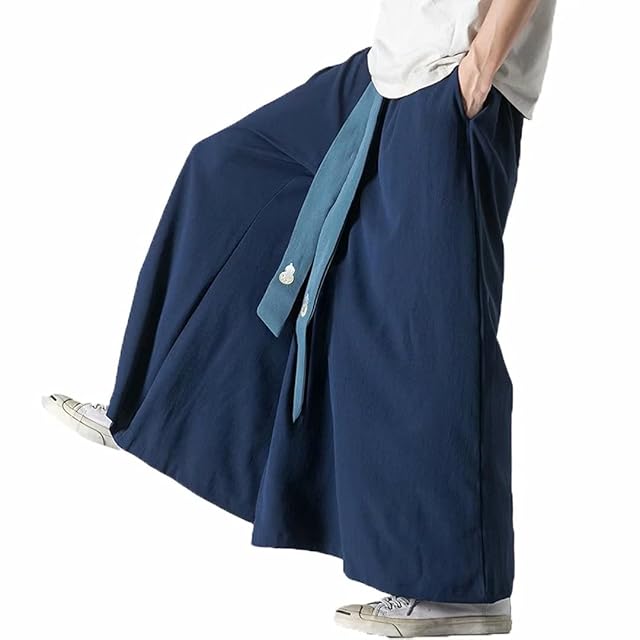 KASINFU ワイドパンツ 袴パンツ メンズ ガチョウパンツ ゆったり 和柄 キュロットスカート 無地 麻サルエル ビッグシルエット 黒 ブラック 和風 和装 和服 ベルト付き 和式ズボン 衣装 大きいサイズ ルームウェア 男女兼用