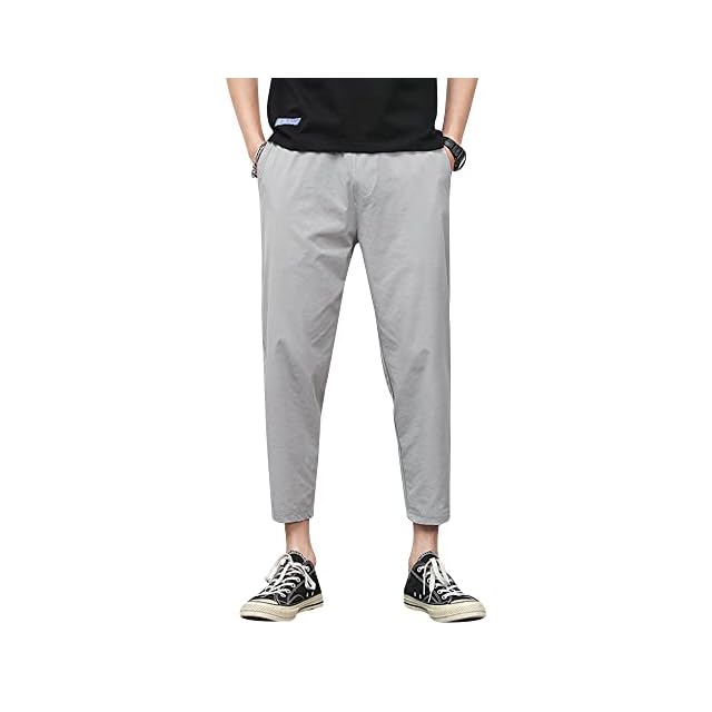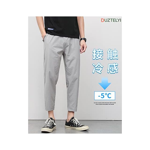 DUZTELYI メンズ パンツ 接触冷感 9分丈 夏用 ストレッチ ゆったり 涼しい 吸水速乾 通気 チノパン ズボン メンズ イージーパンツ テーパードパンツ エアパンツ エアパン 部屋着 大きいサイズ DU450 (2XL, グレー)