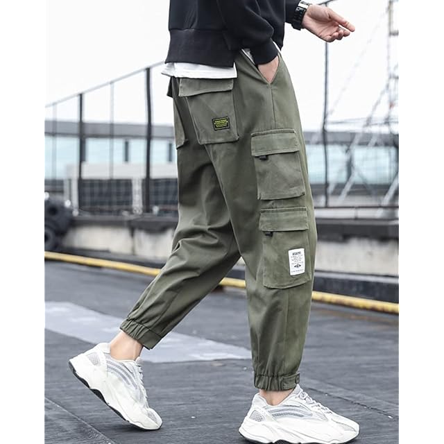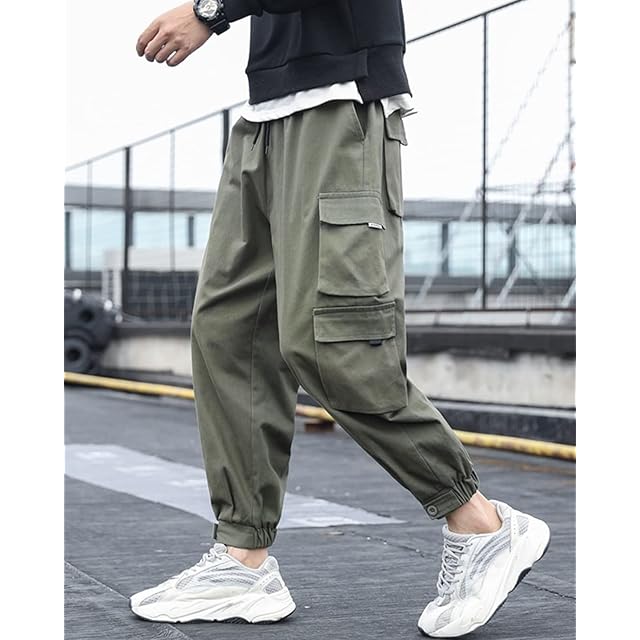 純綿素材で作られたカーゴパンツは、ゆったりとしたシルエットで履きやすくて、前後合わせて八つのポケット付きで、機能性と実用性が高いメンズズボンです。