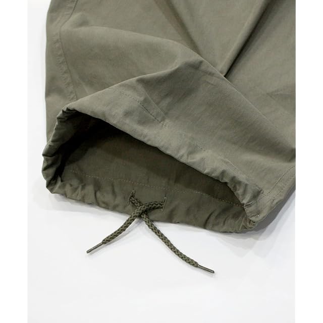 張り感のあるコットン/ナイロン素材のワイドパンツです。