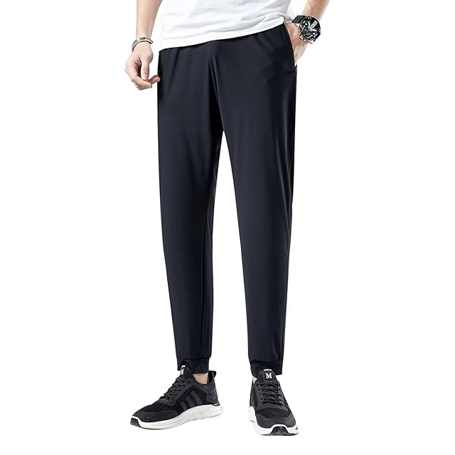 [Anyanmoutn] メンズ ズボン スキニーパンツ アイスシルクパンツ 接触 冷感 ロングパンツ スポーツ 無地 速乾 軽量 トレーニング 薄手 通気 調整紐 ストレッチパンツ 涼しい 夏 春 秋
