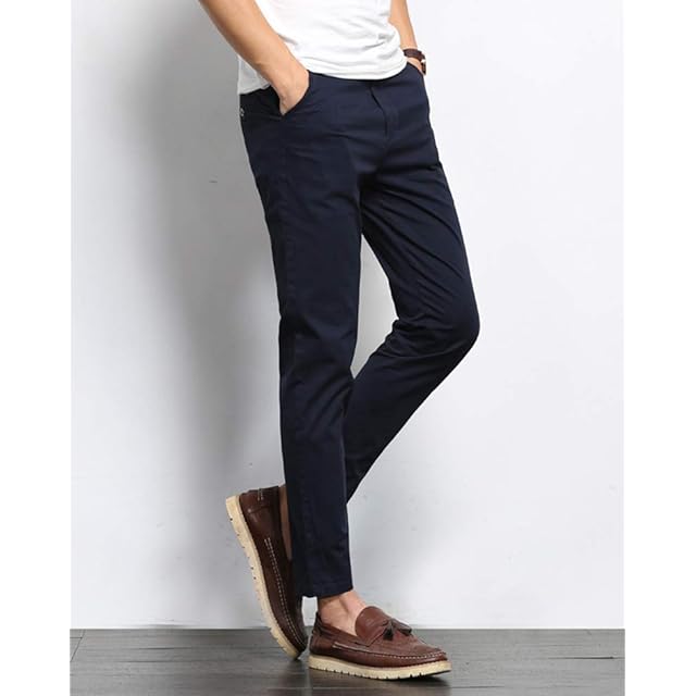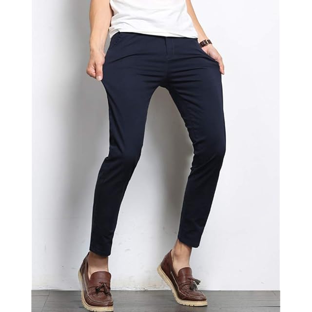 (ソインガ) Soinnga チノパン メンズ スキニーパンツ アンクル 9分丈 ストレッチ スリム ロングパンツ カジュアル テーパード ズボン 無地 美脚 細身 オールシーズン ネイビー 34