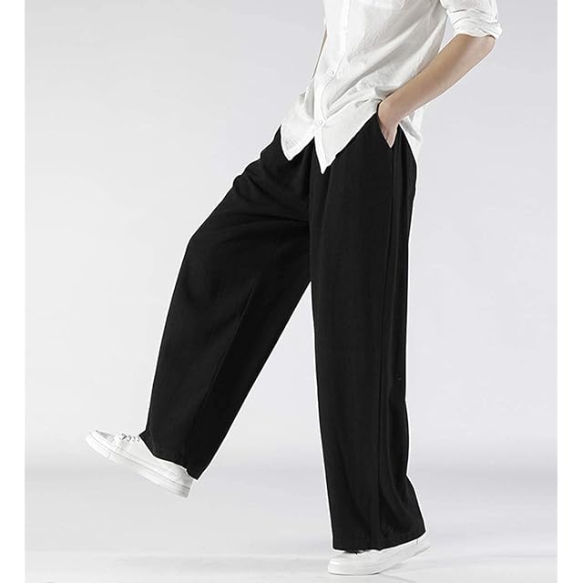 ワイドパンツ メンズ サルエルパンツ 袴パンツ 涼しい ガウチョパンツ 和式ズボン 通気性 メンズパンツ 夏 ワイドパンツメンズ 無地 アラジンパンツ ゆるゆる ズボン ルームウェア カジュアル 春 夏 秋 BLACK 4XL | AVENIR