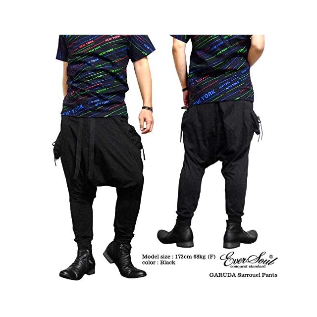 [EVERSOUL] サルエルパンツ アラジンパンツ カーゴパンツ ルーズシルエット テーパード ヨガパンツ ダンス ユニセックス ブラック フリーサイズ