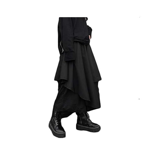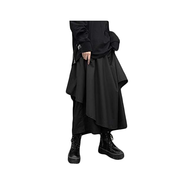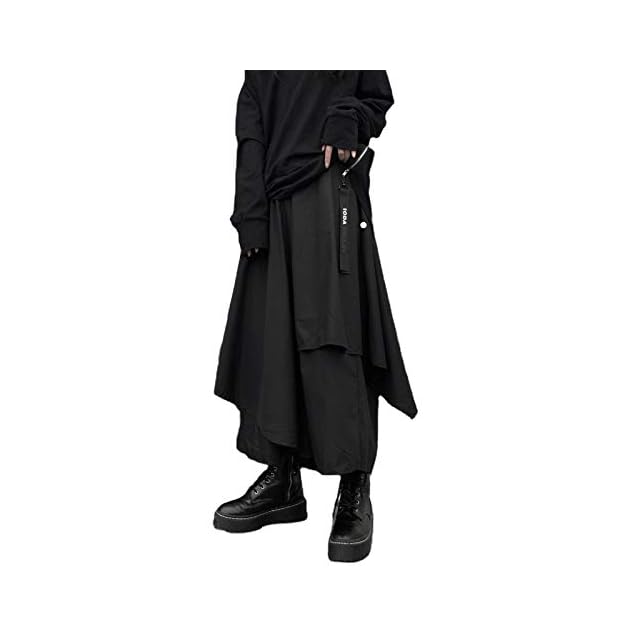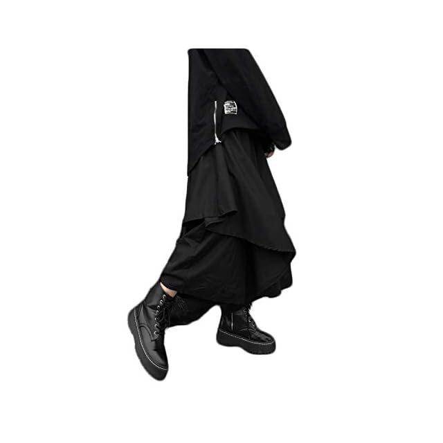 肌触りが良く、高級感のあるブラックカラーのモードな袴パンツに変形デザインの巻きスカートが動きを与え、存在感のあるコーデを実現ウエストがゴム仕様で締め付けがなく、メンズ レディース 問わずストレスフリーでお過ごしていただけます。