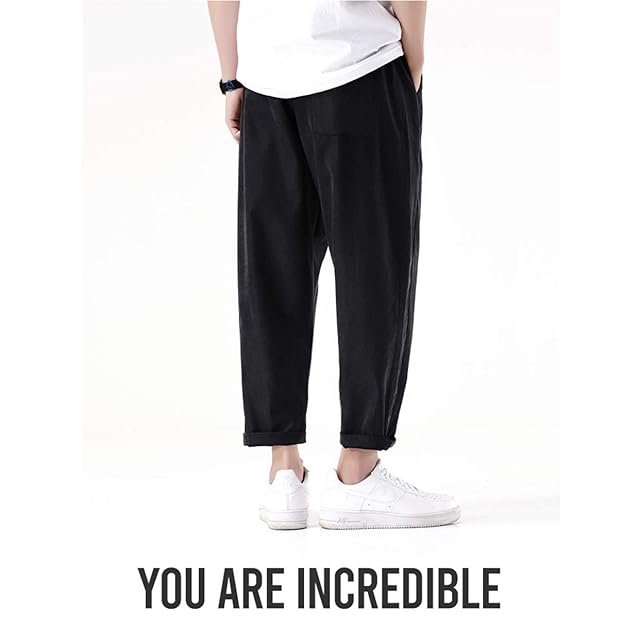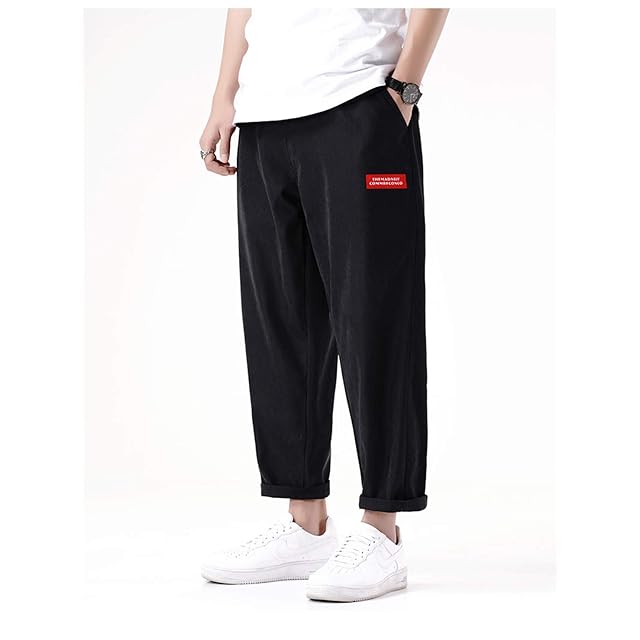 [Poperdision] サルエルパンツ メンズ ズボン ワイドパンツ メンズ 夏服 ズボン 9分丈 無地 調整紐 ゆったり 通気性 大きいサイズ カジュアル 袴パンツ 快適 ワイドパンツ オールシーズン対応 Black 2XL