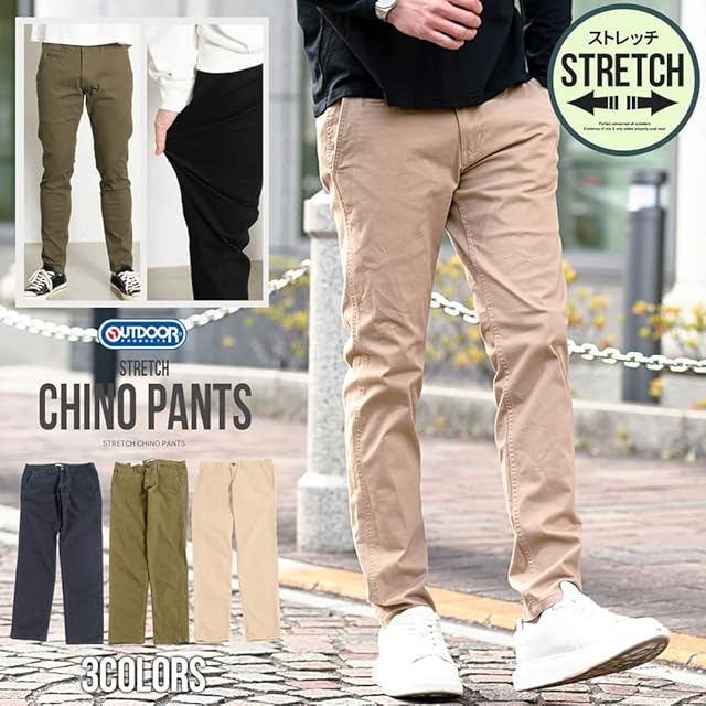 [アウトドアプロダクツ] メンズ ユニセックス ストレッチ ロゴ刺繍 ノータック スキニー チノパンツ スリムシルエット 086030【-】 85 41(KHA/カーキ)