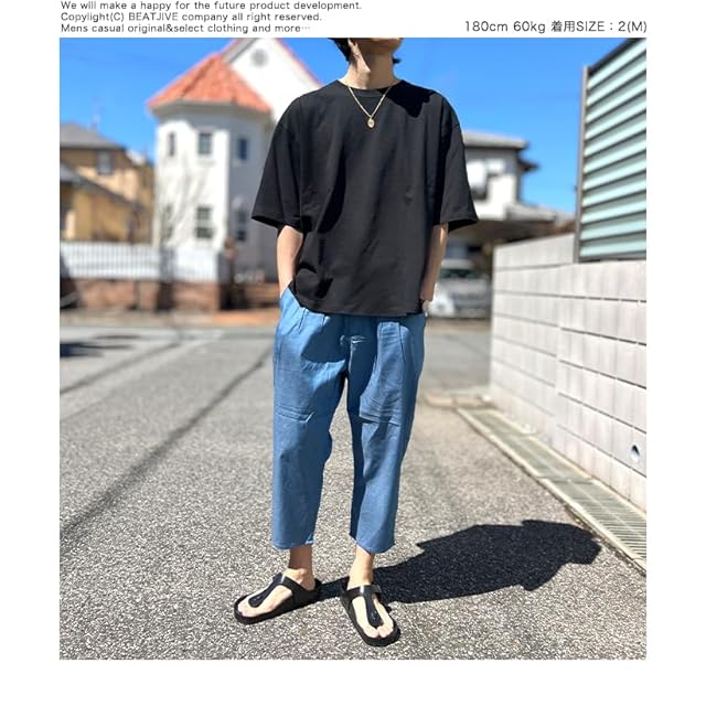 [BEATJIVE] 9213-7000 デニムパンツ メンズ 7分丈 サルエルパンツ テーパードパンツ 涼しい 薄手 春 夏 レディース (BLEACH, L)