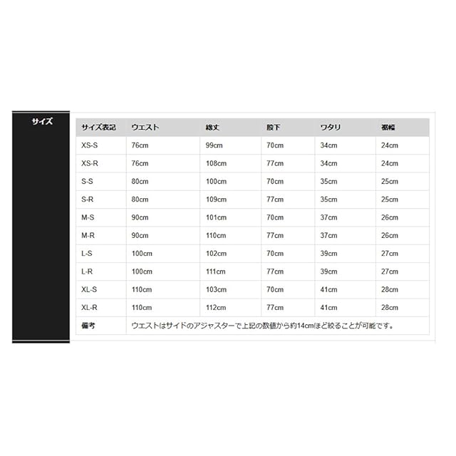 ■サイズ表記/ウエスト/総丈/股下/ワタリ/裾幅 XS-S/76cm/99cm/70cm/34cm/24cm XS-R/76cm/108cm/77cm/34cm/24cm
