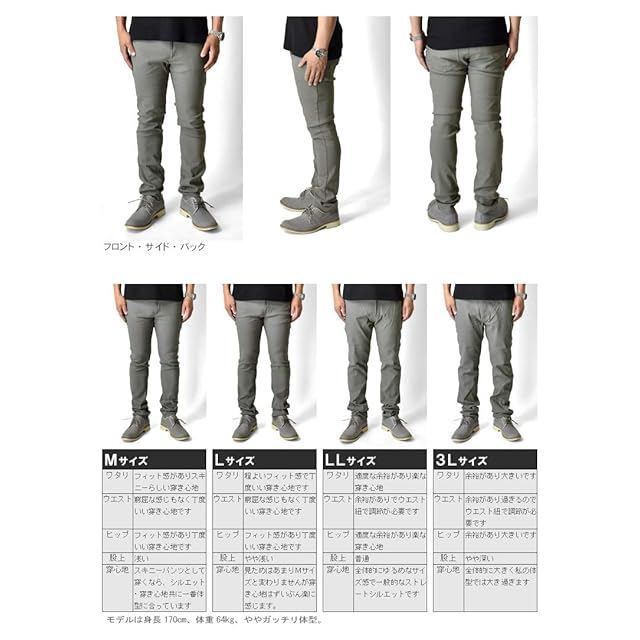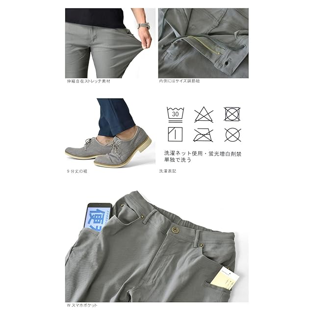 [アルージェ] Wポケット チノパン メンズ カーゴパンツ 超伸縮 ハイテンションストレッチ イージー パンツ スキニー / C6L (3L, Wポケット10分丈:グレーa)