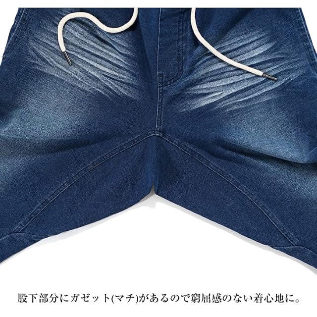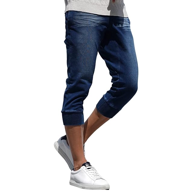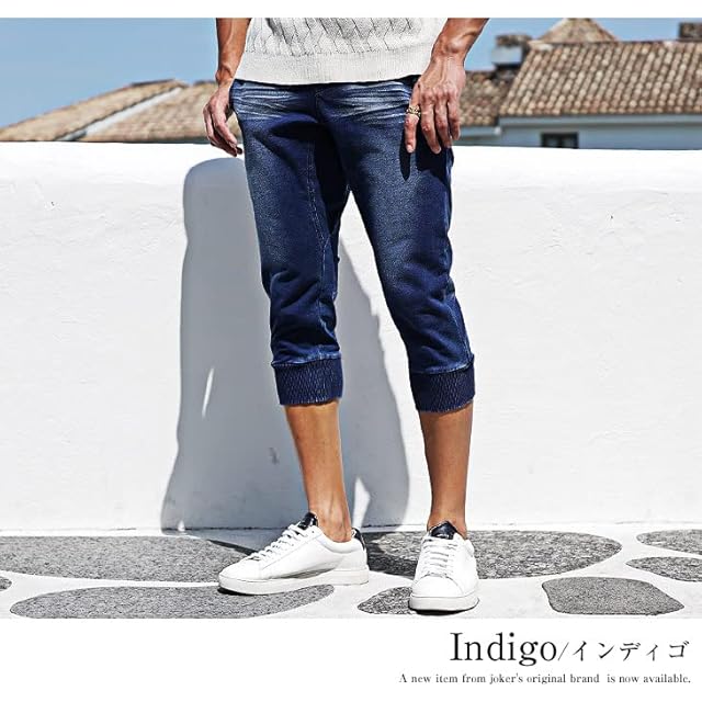 [サムディフ] スウェットデニム クロップドパンツ メンズ ひざ下 スマートスタイル ストレッチ素材 スウェットパンツ すっきりシルエット ジョガーパンツ XXL インディゴ