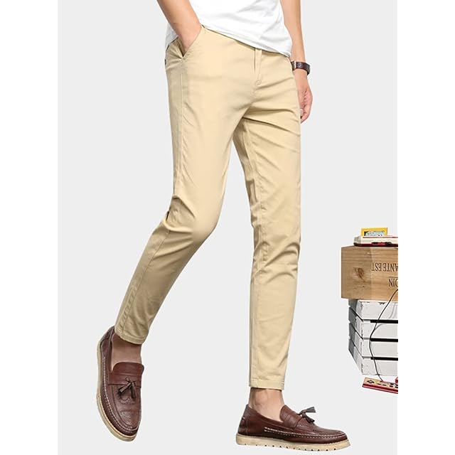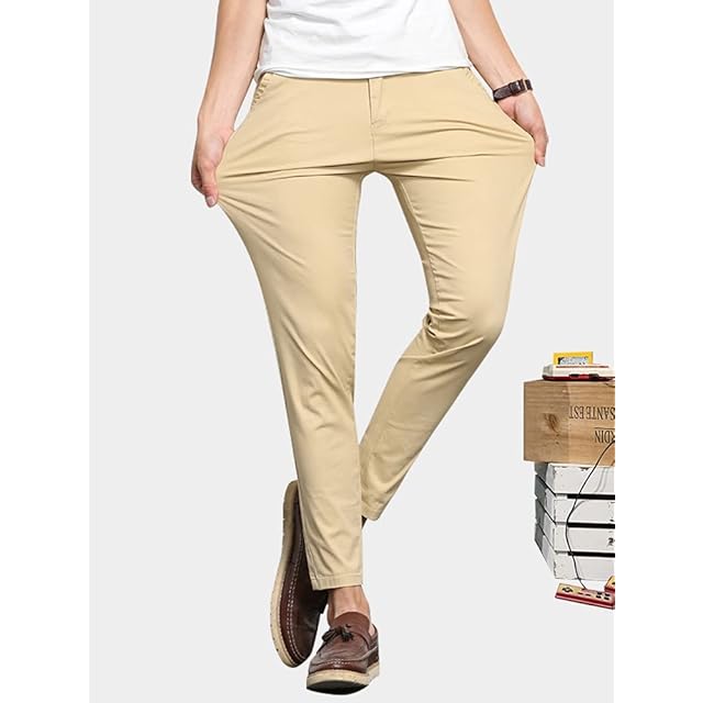 [Maioule] チノパン アンクル メンズ 九分丈 アンクルパンツ ストレッチ スリム テーパード カジュアル ロングパンツ ワイドパンツ 大きいサ 春 夏 秋 無地 細身 美脚 スリムなアンクルパンツ NP05(カーキ,29)